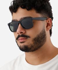 Óculos de sol masculino desenvolvido em acetato resistente na cor preto com formato quadrado e as extremidades arredondadas. A lente na cor G15, a ponte em U e plaquetas embutidas. Com proteção da lente UVA e UVB.