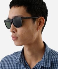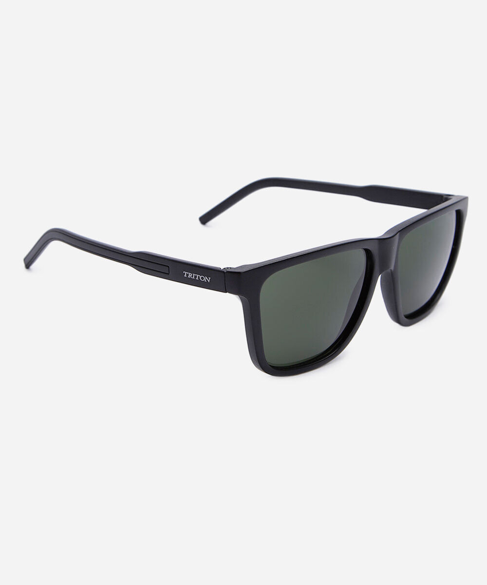 Óculos de sol desenvolvido em acetato resistente na cor preto, com formato quadrado e as extremidades arredondadas. A lente na cor cinza esverdeada, a ponte em U e plaquetas embutidas. Com proteção da lente UVA e UVB.