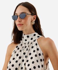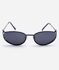 Óculos feminino de sol desenvolvido em metal resistente na cor preta, com formato oval e as extremidades arredondadas. A lente na cor cinza, a ponte em U e plaquetas embutidas. Com proteção da lente UVA e UVB. A Triton é uma marca de óculos brasileira com mais de 40 anos, especializada no mercado ótico, tem o propósito de levar modelos de acessórios: óculos de sol, óculos de grau e óculos clipon personalizados para o público masculino, feminino e infantil.