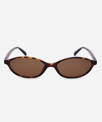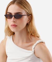 Óculos de sol feminino desenvolvido em acetato resistente com formato oval e as extremidades arredondadas. Ponte em U e plaquetas embutidas. Com proteção da lente UVA e UVB.