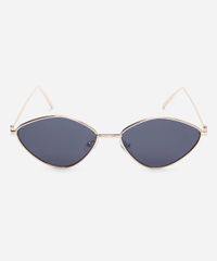 Óculos de sol desenvolvido em metal resistente na cor preta, com formato oval e as extremidades arredondadas. A lente na cor cinza, a ponte em U e plaquetas embutidas. Com proteção da lente UVA e UVB.