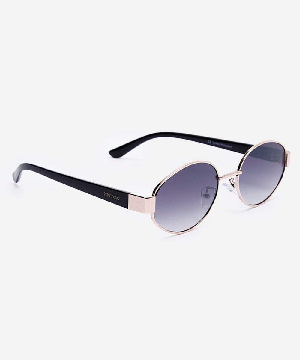 Óculos de sol desenvolvido em metal resistente na cor dourada com formato oval e as extremidades arredondadas. Lente na cor cinza degradê, ponte em U e plaquetas embutidas. Com proteção da lente UVA e UVB. A Triton é uma marca de óculos brasileira com mais de 40 anos, especializada no mercado ótico, tem o propósito de levar modelos de acessórios: óculos de sol, óculos de grau e óculos clipon personalizados para o público masculino, feminino e infantil.