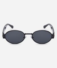 Óculos de sol unissex desenvolvido em metal resistente na cor preta com formato oval e as extremidades arredondadas. A lente na cor cinza, a ponte em U e plaquetas embutidas. Com proteção da lente UVA e UVB.