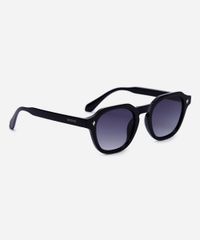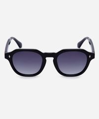 Óculos de sol desenvolvido em acetato resistente na cor preta, com formato oval e as extremidades arredondadas. A lente na cor cinza degradê, a ponte em U e plaquetas embutidas. Com proteção da lente UVA e UVB.