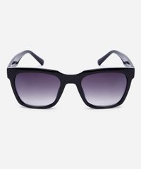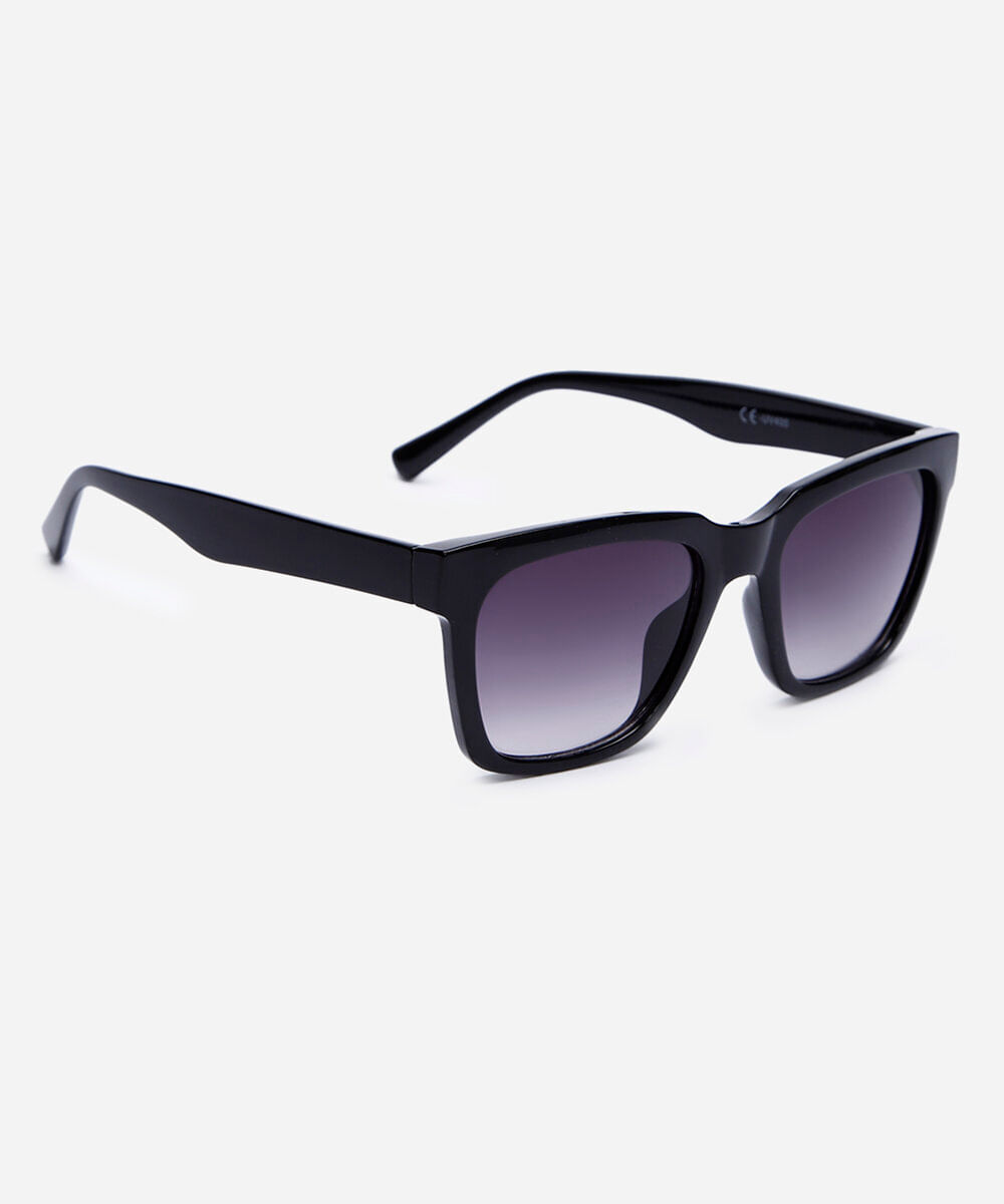 Óculos de sol desenvolvido em acetato resistente na cor preta, com formato quadrado e as extremidades arredondadas. A lente na cor cinza degradê, a ponte em U e plaquetas embutidas. Com proteção da lente UVA e UVB.