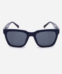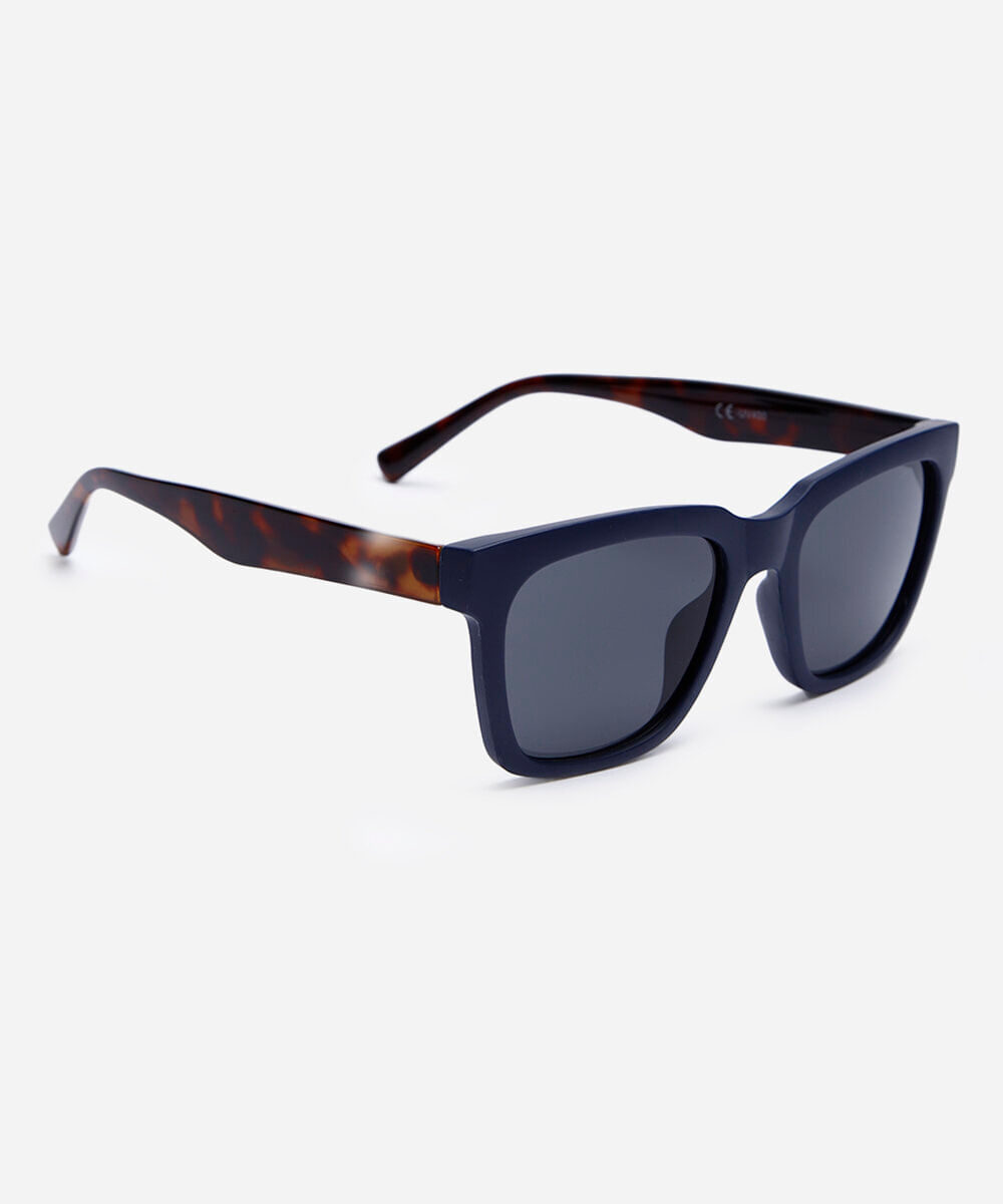 Óculos de sol desenvolvido em acetato resistente na cor azul, hastes com efeito tartaruga, formato quadrado e as extremidades arredondadas. A lente na cor cinza, a ponte em U e plaquetas embutidas. Com proteção da lente UVA e UVB.