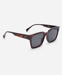 Óculos de sol desenvolvido em acetato resistente na cor marrom com efeito tartaruga, com formato quadrado e as extremidades arredondadas. A lente na cor cinza, a ponte em U e plaquetas embutidas. Com proteção da lente UVA e UVB.