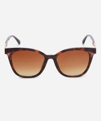 Óculos de sol desenvolvido em acetato resistente na cor marrom com efeito tartaruga, com formato quadrado e as extremidades arredondadas. A lente na cor marrom, a ponte em U e plaquetas embutidas. Com proteção da lente UVA e UVB.