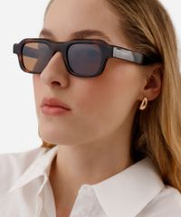 Óculos de sol desenvolvido em acetato resistente na cor marrom com efeito tartaruga, com formato quadrado e as extremidades arredondadas. A lente na cor marrom, a ponte em U e plaquetas embutidas. Com proteção da lente UVA e UVB.
