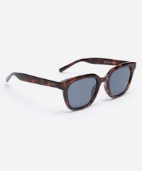 Óculos de sol desenvolvido em acetato resistente na cor marrom e efeito tartaruga, com formato quadrado e as extremidades arredondadas. A lente na cor cinza, a ponte em U e plaquetas embutidas. Com proteção da lente UVA e UVB.