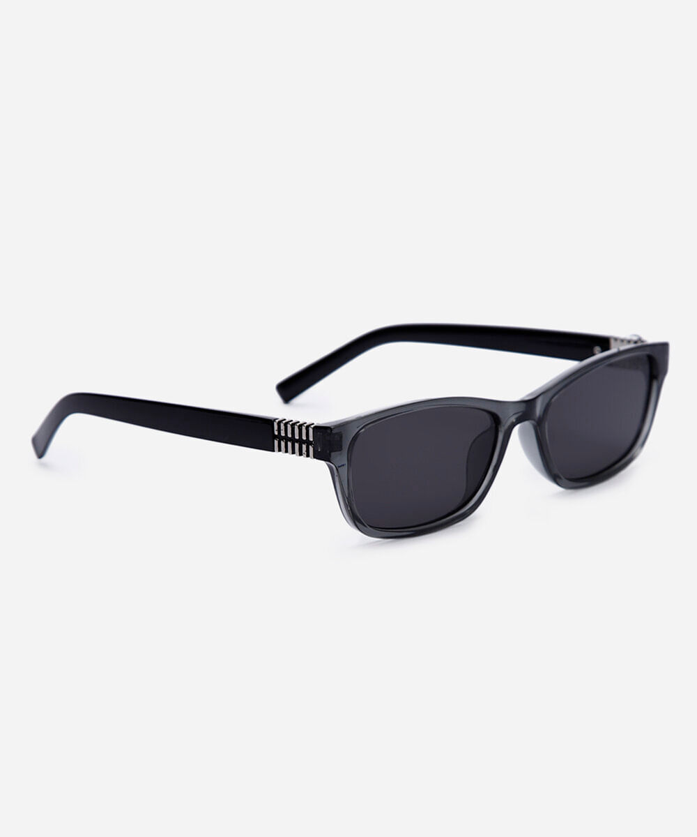 Óculos de sol desenvolvido em acetato resistente na cor cinza, com formato quadrado e as extremidades arredondadas. A lente na cor cinza, a ponte em U e plaquetas embutidas. Com proteção da lente UVA e UVB.