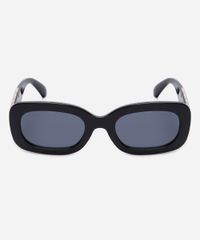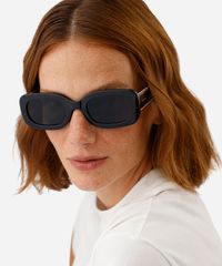 Óculos de sol desenvolvido em acetato resistente na cor preta com formato quadrado e as extremidades arredondadas. Lente na cor cinza, ponte em U e plaquetas embutidas. Com proteção da lente UVA e UVB.