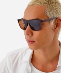 Óculos de sol desenvolvido em acetato resistente na cor marrom, com formato quadrado e as extremidades arredondadas. A lente na cor marrom, a ponte em U e plaquetas embutidas.
