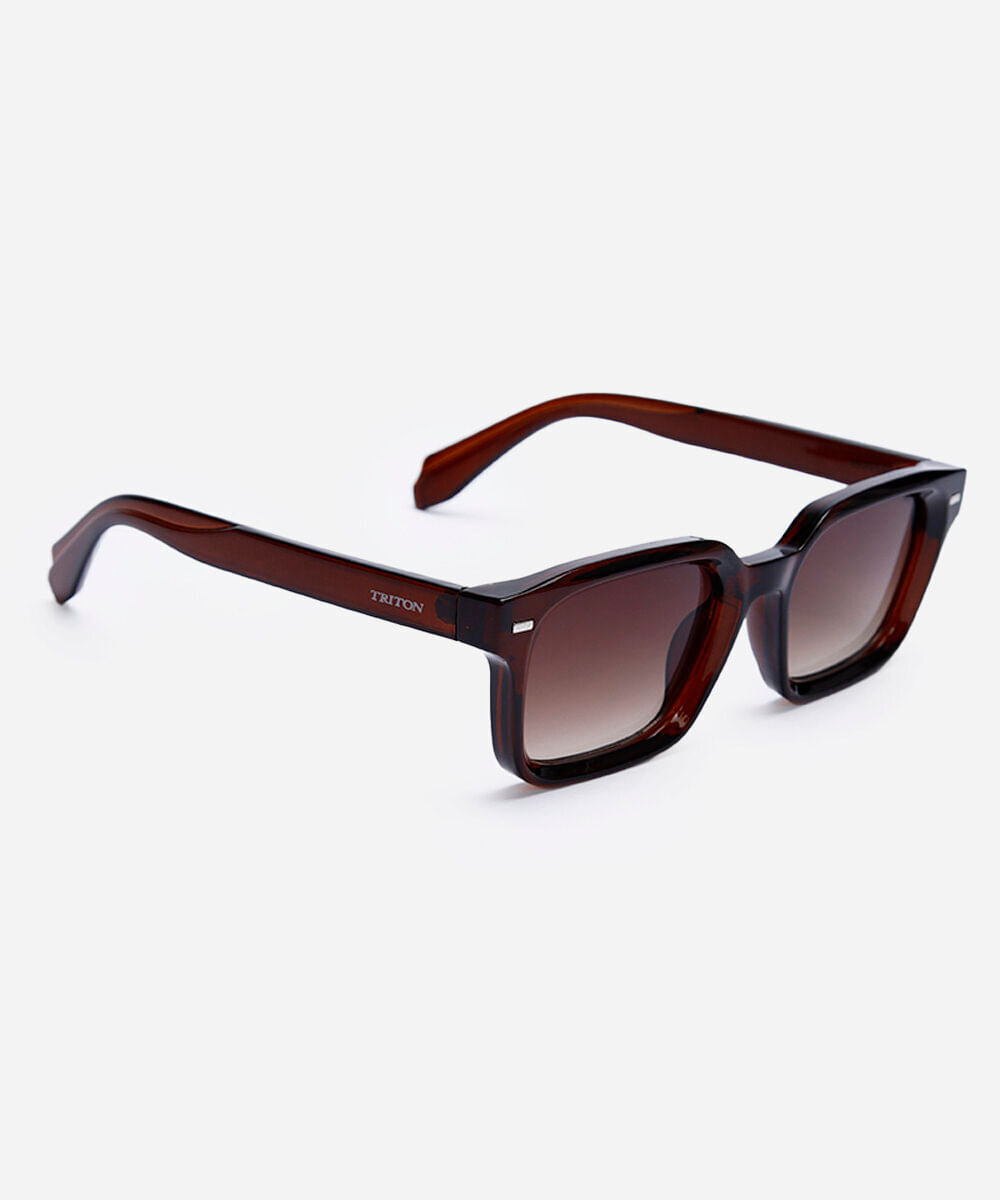 Óculos de sol desenvolvido em acetato resistente na cor marrom com formato quadrado e as extremidades arredondadas. Lente na cor marrom, ponte em U e plaquetas embutidas. Com proteção da lente UVA e UVB. A Triton é uma marca de óculos brasileira com mais de 40 anos, especializada no mercado ótico, tem o propósito de levar modelos de acessórios: óculos de sol, óculos de grau e óculos clipon personalizados para o público masculino, feminino e infantil.
