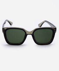 Óculos de sol feminino desenvolvido em acetato resistente na cor verde com formato quadrado e as extremidades arredondadas. Lente na cor verde, ponte em U e plaquetas embutidas. Com proteção da lente UVA e UVB.