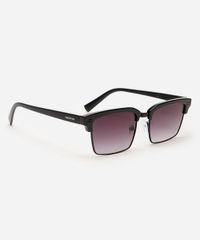 Óculos de sol masculino desenvolvido em acetato resistente e metal na cor preta com formato quadrado com as extremidades arredondadas. A lente na cor cinza com efeito degradê, a ponte em U e plaquetas embutidas. Com proteção da lente UVA e UVB.