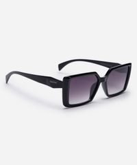 Óculos de sol desenvolvido em metal resistente na cor preto, com formato quadrado e as extremidades arredondadas. A lente na cor cinza, a ponte em U e plaquetas embutidas. Com proteção da lente UVA e UVB.