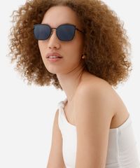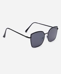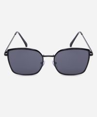 Óculos de sol desenvolvido em metal resistente na cor preta, com formato oval e as extremidades arredondadas. A lente na cor cinza, a ponte em U e plaquetas embutidas. Com proteção da lente UVA e UVB.