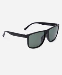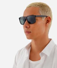 Óculos de sol desenvolvido em acetato resistente na cor preto, com formato quadrado e as extremidades arredondadas. A lente na cor g15, a ponte em U e plaquetas embutidas.