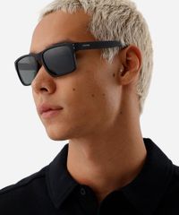 Óculos de sol masculino desenvolvido em acetato resistente na cor preta com efeito fosco e formato quadrado com as extremidades arredondadas. A lente na cor cinza, a ponte em U e plaquetas embutidas. Com proteção da lente UVA e UVB.