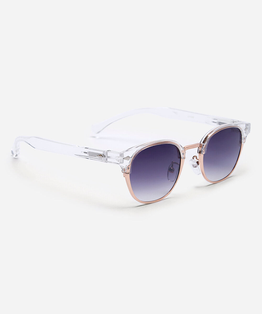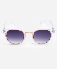Óculos de sol desenvolvido em acetato resistente cinza transparente, com formato quadrado e as extremidades arredondadas. A lente na cor cinza, a ponte em U e plaquetas embutidas. Com proteção da lente UVA e UVB.
