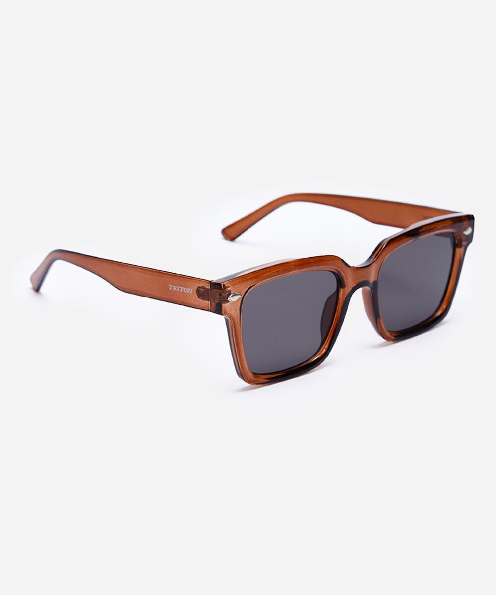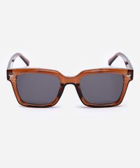 Óculos de sol unissex desenvolvido em acetato resistente na cor marrom com efeito fumê e formato quadrado com as extremidades arredondadas. A lente na cor cinza, a ponte em U e plaquetas embutidas. Com proteção da lente UVA e UVB.