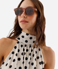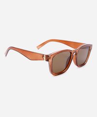 Óculos de sol desenvolvido em acetato resistente na cor marrom, com formato quadrado e as extremidades arredondadas. A lente na cor marrom, a ponte em U e plaquetas embutidas. Com proteção da lente UVA e UVB.
