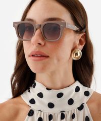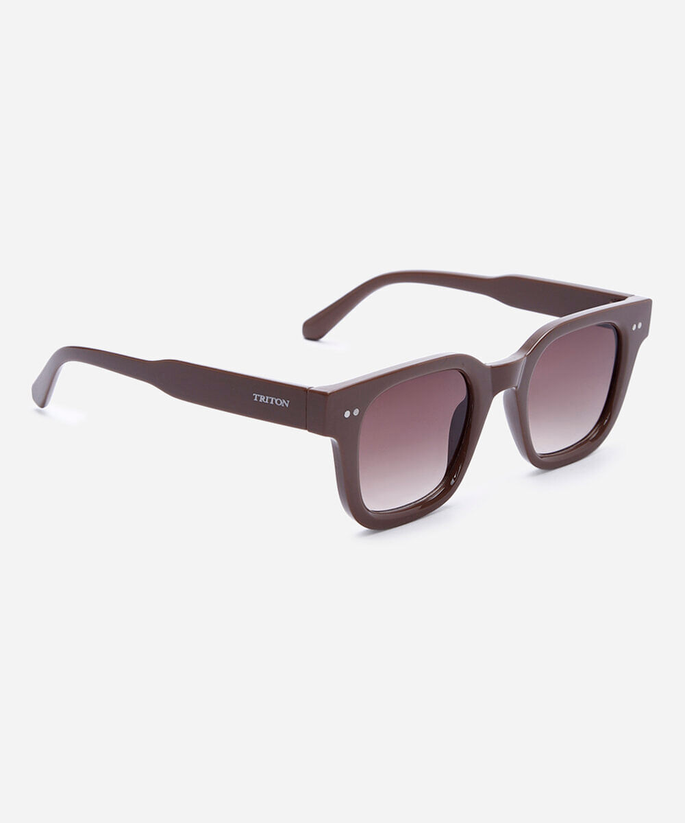 Óculos de sol desenvolvido em acetato resistente na cor marrom, com formato quadrado e as extremidades arredondadas. A lente na cor marrom degradê, a ponte em U e plaquetas embutidas. Com proteção da lente UVA e UVB.