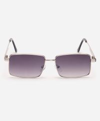 Óculos de sol desenvolvido em metal resistente na cor prateada, com formato quadrado e as extremidades arredondadas. A lente na cor cinza, a ponte em U e plaquetas embutidas. Com proteção da lente UVA e UVB.