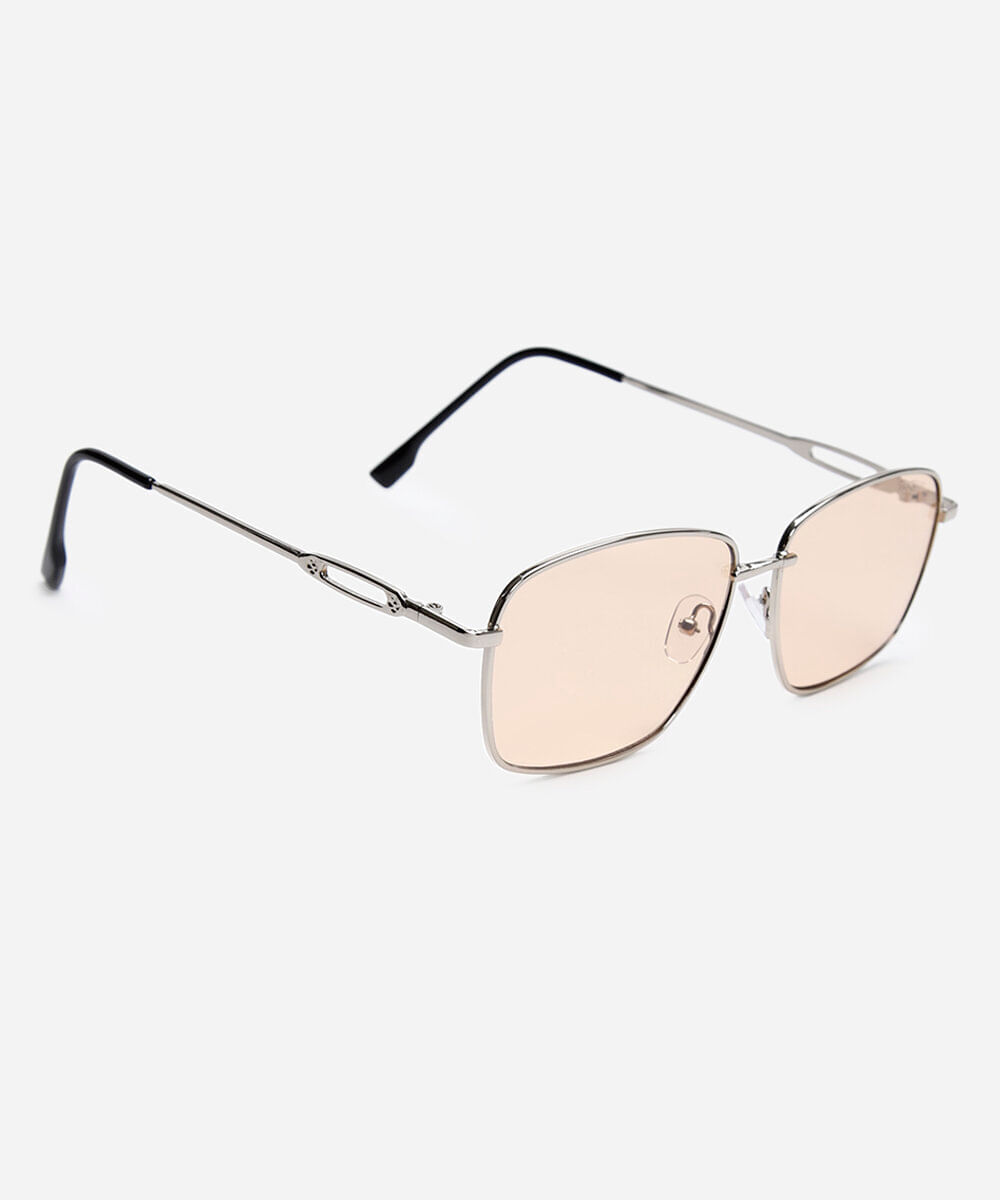 Óculos de sol desenvolvido em metal resistente na cor prateada, com formato quadrado e as extremidades arredondadas. A lente na cor marrom, a ponte em U e plaquetas embutidas. Com proteção da lente UVA e UVB.