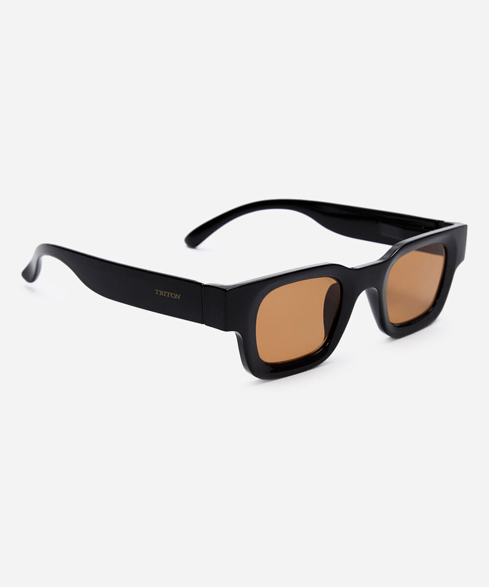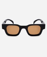Óculos de sol desenvolvido em acetato resistente na cor preta, com formato quadrado e as extremidades arredondadas. A lente na cor marrom, a ponte em U e plaquetas embutidas. Com proteção da lente UVA e UVB.