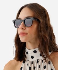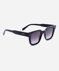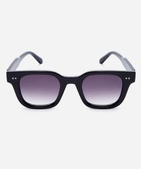 Óculos de sol desenvolvido em acetato resistente na cor preto, com formato quadrado e as extremidades arredondadas. A lente na cor cinza degradê, a ponte em U e plaquetas embutidas. Com proteção da lente UVA e UVB.