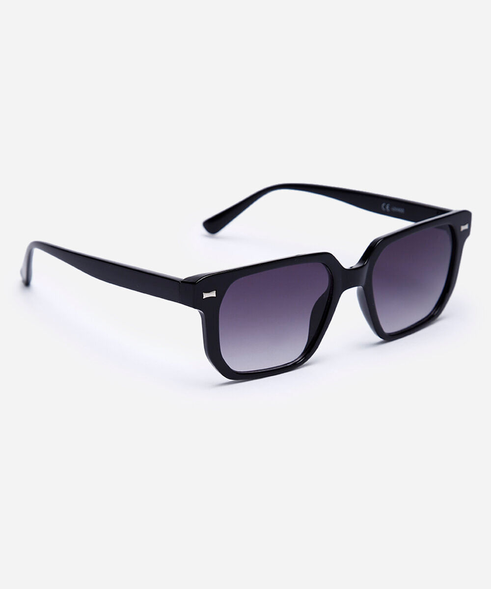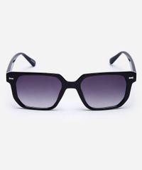 Óculos de sol desenvolvido em acetato resistente na cor preta, com formato quadrado e as extremidades arredondadas. A lente na cor cinza degradê, a ponte em U e plaquetas embutidas. Com proteção da lente UVA e UVB.