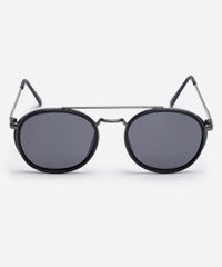 Óculos de sol desenvolvido em metal resistente na cor cinza, com formato redondo e as extremidades arredondadas. A lente na cor cinza, a ponte em U e plaquetas embutidas. Com proteção da lente UVA e UVB.
