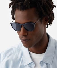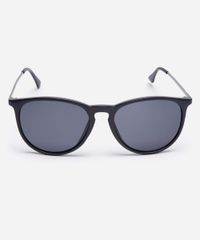 Óculos de sol desenvolvido em acetato resistente na cor preta, com formato oval e as extremidades arredondadas. A lente na cor cinza, a ponte em U e plaquetas embutidas. Com proteção da lente UVA e UVB.