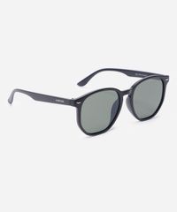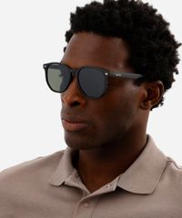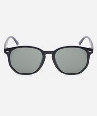 Óculos de sol desenvolvido em acetato resistente na cor preta com formato redondo e as extremidades arredondadas. Lente na cor preta, ponte em U e plaquetas embutidas. Com proteção da lente UVA e UVB.