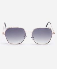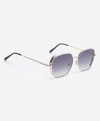 Óculos de sol desenvolvido em metal resistente na cor dourada, com formato redondo e as extremidades arredondadas. A lente na cor cinza esverdeada, a ponte em U e plaquetas embutidas. Com proteção da lente UVA e UVB.