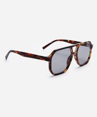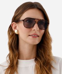 Óculos de sol unissex desenvolvido em acetato resistente na cor marrom com efeito tartaruga com formato aviador e as extremidades arredondadas. A lente na cor cinza, a ponte em U e plaquetas embutidas. Com proteção da lente UVA e UVB. A Triton é uma marca de óculos brasileira com mais de 40 anos, especializada no mercado ótico, tem o propósito de levar modelos de acessórios: óculos de sol, óculos de grau e óculos clipon personalizados para o público masculino, feminino e infantil.