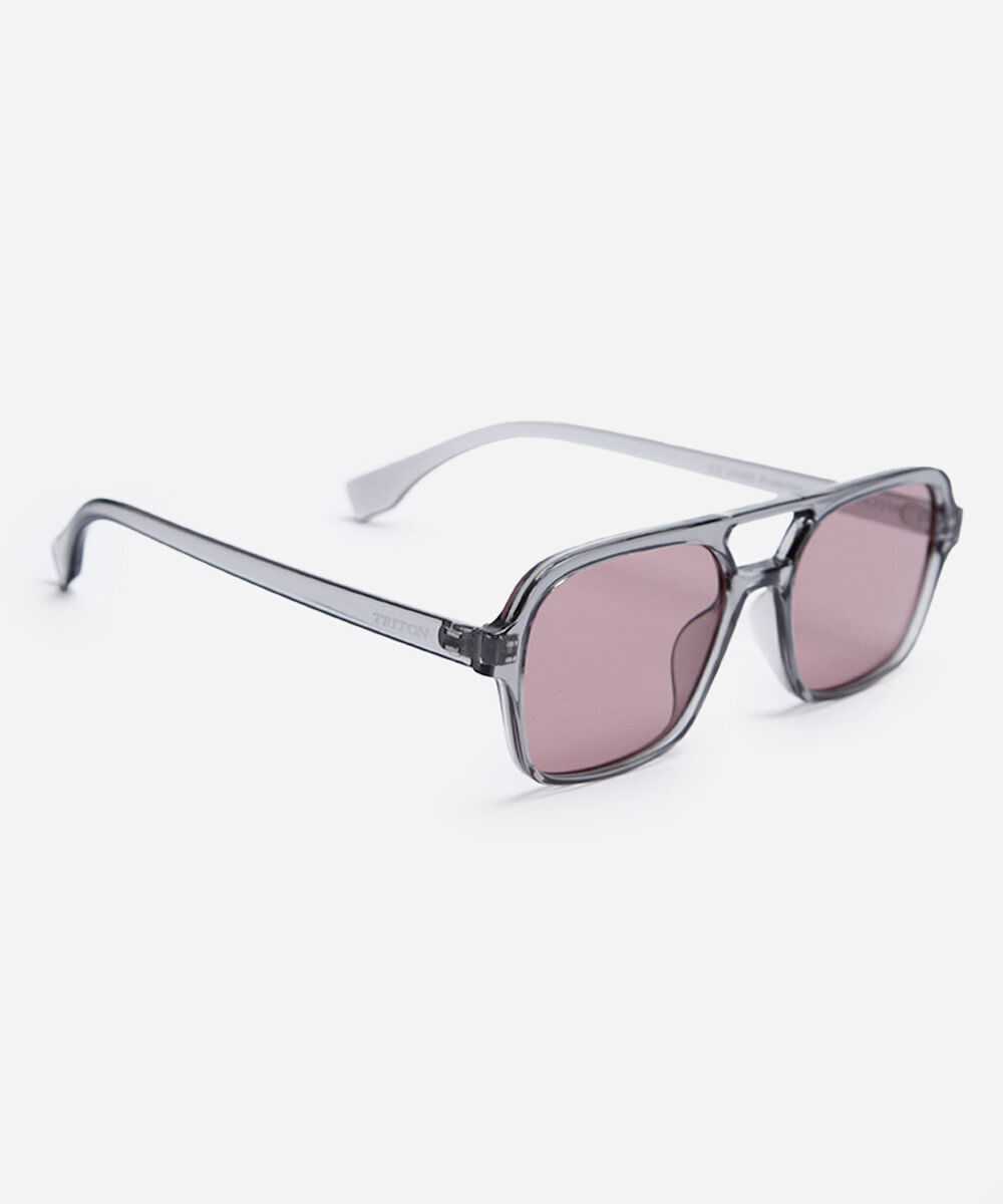 Óculos de sol unissex desenvolvido em acetato resistente na cor cinza com formato quadrado e as extremidades arredondadas. A lente na cor rosa, a ponte em U e plaquetas embutidas. Com proteção da lente UVA e UVB. A Triton é uma marca de óculos brasileira com mais de 40 anos, especializada no mercado ótico, tem o propósito de levar modelos de acessórios: óculos de sol, óculos de grau e óculos clipon personalizados para o público masculino, feminino e infantil.