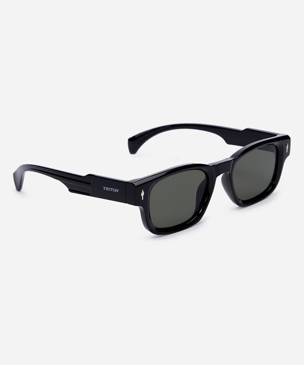 Óculos de sol unissex desenvolvido em acetato resistente na cor preta com formato quadrado e as extremidades arredondadas. A lente na cor G15, a ponte em U e plaquetas embutidas. Com proteção da lente UVA e UVB. A Triton é uma marca de óculos brasileira com mais de 40 anos, especializada no mercado ótico, tem o propósito de levar modelos de acessórios: óculos de sol, óculos de grau e óculos clipon personalizados para o público masculino, feminino e infantil.