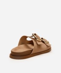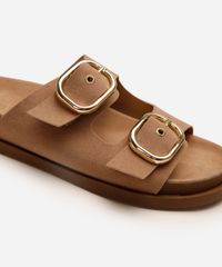 • Cabedal com duas tiras largas e fivelas metálicas robustas que permitem o ajuste perfeito aos pés.
