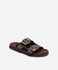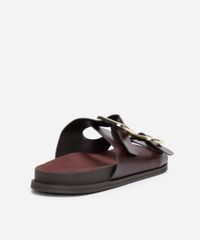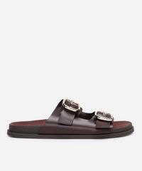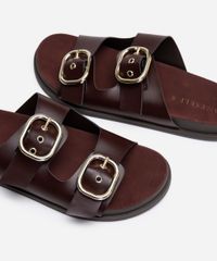 Papete confeccionada em material sintético resistente com textura de camurça. O modelo tem bico redondo e cabedal com tiras largas com fivelas para ajuste. Possui solado anatômico com inscrição de marca e sola texturizada que auxilia no caminhar.