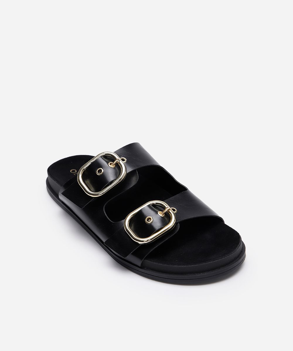 • Cabedal com duas tiras largas e fivelas metálicas robustas que permitem o ajuste perfeito aos pés.