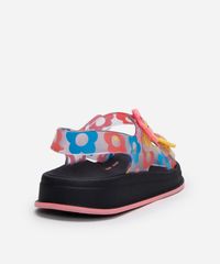 Papete infantil confeccionada em poliuretano. Possui bico redondo, cabedal com design transparente, estampado com o logo da personagem Barbie e flores em cores contrastantes, fechamento lateral com tamanho ajustável, detalhes com fivelas de flores, sola macia proporcionando maior conforto ao caminhar e recorte em cor contrastante.