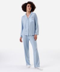pijama americano feminino canelado azul