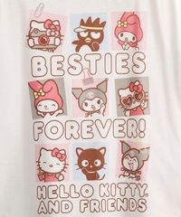 • Camiseta com estampa frontal da Hello Kitty e seus amigos e a frase "Besties Forever".
