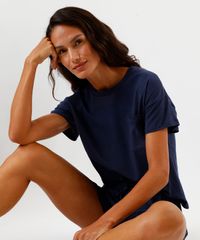 Pijama feminino short doll manga curta em algodão com bolso azul