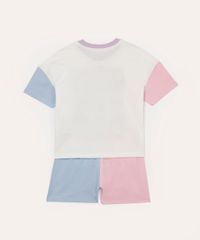 • Design moderno com recortes em color block nas mangas e no shorts, criando um visual alegre e atual.