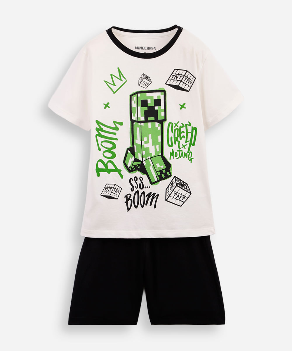 • Camiseta de manga curta com estampa divertida do personagem Creeper e elementos do universo Minecraft.