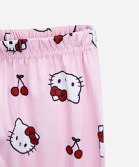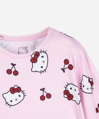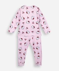 Conjunto de pijama infantil confeccionado em malha com estampa temática da "Hello kitty". Composto por blusa e calça. A blusa com modelagem reta, caimento solto mangas longas e gola redonda. A calça possui modelo jogger, caimento solto e cós com elástico embutido. Detalhe de acabamento pespontado nos punhos e nas barras. Composição: 96% poliéster 4% elastano Instruções de lavagem: - Temperatura até 40º - Não alvejar - Não secar em secadora - Secar na vertical - Passar em temperatura média - Não lavar a seco - Limpar a úmido